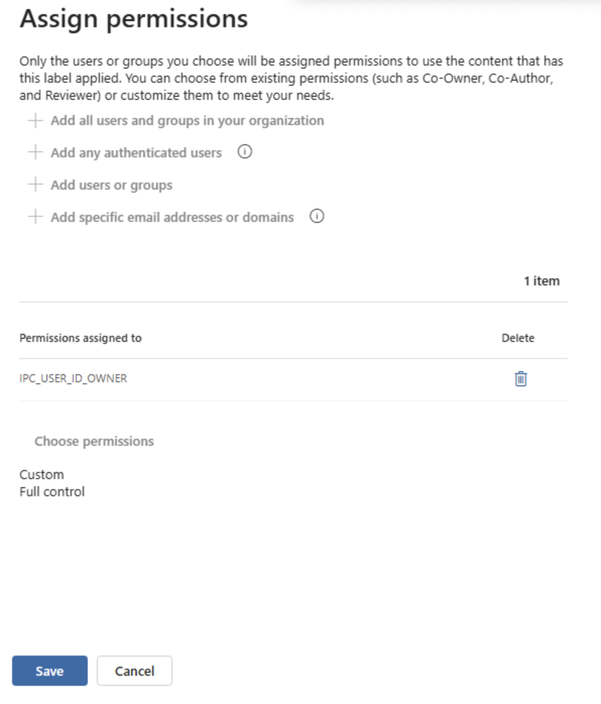 Owner-Only Sensitivity Label Encryption Configuration (IPC_USER_ID_OWNER)