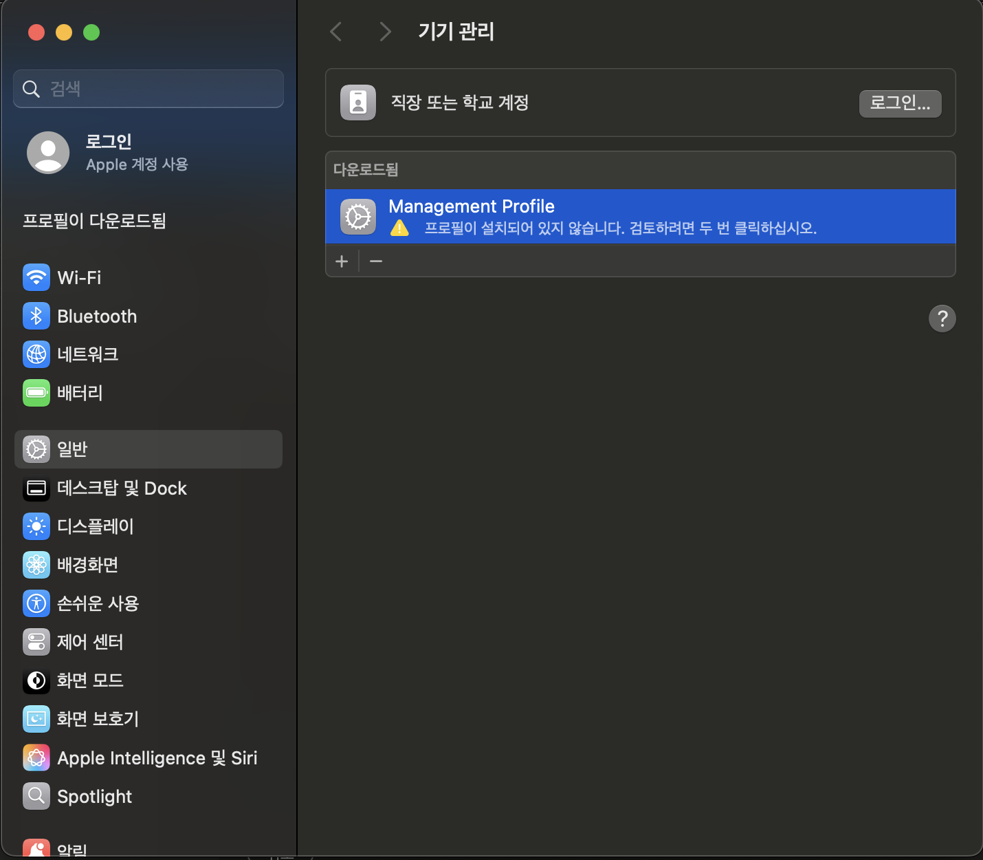 프로필 다운로드가 완료되면 설정의 기기 관리 화면에서 Management Profile을 두 번 눌러 설치합니다.